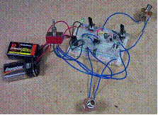 First and foremost, the pedal’s circuit is implemented on a small breadboard and utilizes a simple two-position switch to turn the device on and off: