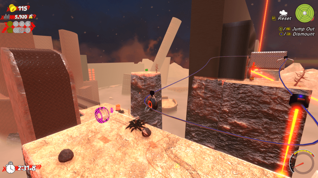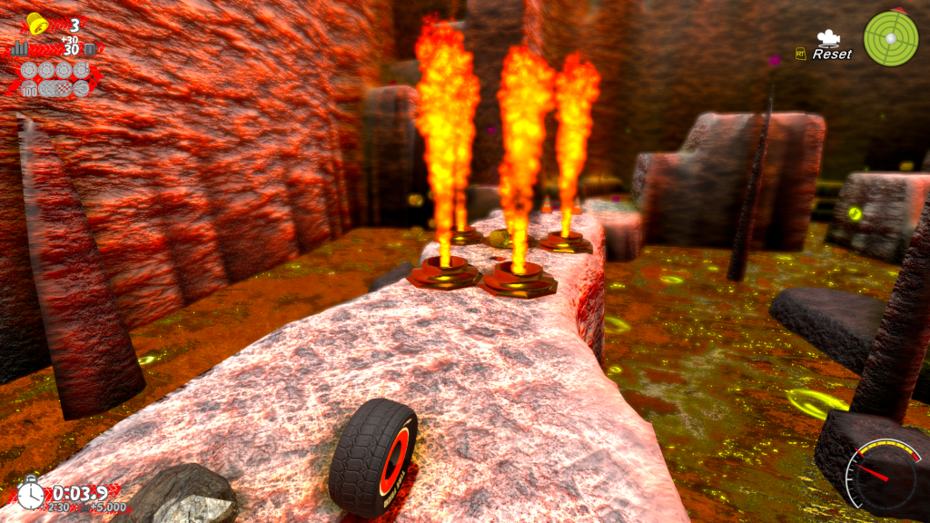 Levels are still in the works, but there’s a good variety here. Desert temples, asphalt hills, junk scattered around space, perilous volcanoes—Tire Friend Planet’s got it all!