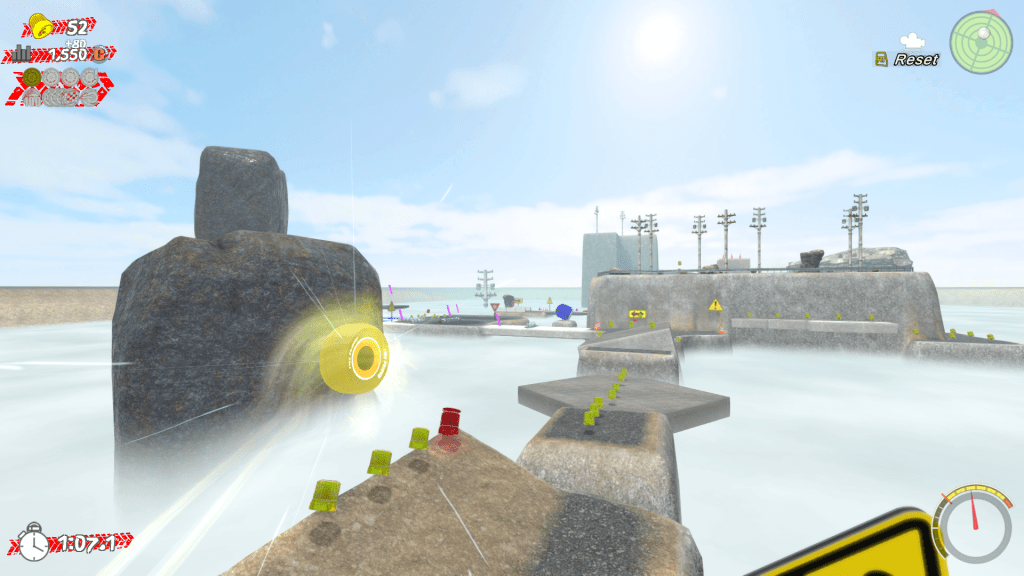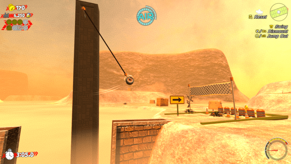 Climb that hill. Now jump off that cliff. Now bounce right back up. Now rev up, hit the ground, burst forth into Overdrive! … and then crash right through traffic barrels and soar past perilous pits and pokey things. That’s how you chain together a series of moves and channel your momentum!